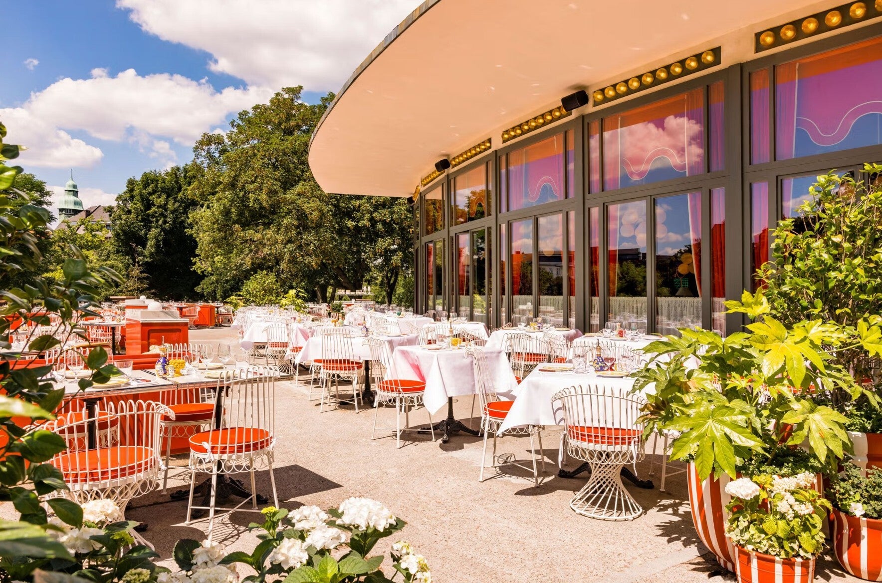 Die Innenausstattung ist von klaren Linien und edlen Materialien geprägt, die den Raum sowohl elegant als auch entspannend wirken lassen. Dezente Beleuchtung und hochwertige Möbel sorgen für eine angenehme und stilvolle Umgebung, die perfekt zu einem entspannten Dinner oder einem geselligen Treffen passt. Das Restaurant bietet sowohl Innenbereiche für eine intime Atmosphäre als auch einen großzügigen Außenbereich, in dem Gäste bei schönem Wetter ihre Mahlzeiten unter freiem Himmel genießen können.
