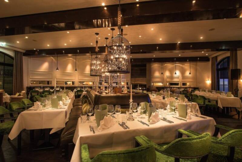 Das Innere des Restaurants beeindruckt durch ein durchdachtes, modernes Design, das klaren Linien und hochwertigen Materialien eine warme und einladende Atmosphäre entgegenstellt. Dezente Beleuchtung, elegante Möbel und geschmackvolle Dekorationselemente schaffen ein Ambiente, das gleichermaßen luxuriös wie gemütlich wirkt. Der Raum ist so gestaltet, dass er sowohl intime Momente als auch größere Gesellschaften perfekt aufnimmt – von romantischen Dinnern über geschäftliche Besprechungen bis hin zu festlichen Anlässen.