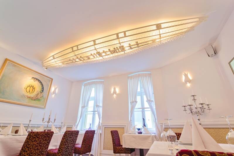 Das Ambiente des Restaurants verbindet moderne Eleganz mit traditionellem Charme. Warme Farben, edle Materialien und sorgfältig ausgewählte Dekorationen schaffen eine einladende Atmosphäre, in der sich Gäste sofort wohlfühlen. Dezente Beleuchtung und hochwertige Möbel tragen dazu bei, dass das Lokal gleichzeitig elegant und gemütlich wirkt. Der Innenbereich ist so gestaltet, dass sowohl intime Dinner als auch größere Gruppen einen angenehmen Rahmen finden. Ein harmonischer Mix aus modernen Designelementen und orientalischem Flair vermittelt eine stilvolle, zeitgemäße Interpretation der türkischen Kultur.