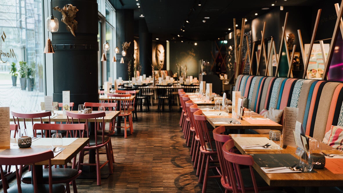 Das Restaurant Mongo’s Düsseldorf besticht durch seine moderne, offene Architektur und eine großzügige Gestaltung, die eine einladende und kommunikative Atmosphäre schafft. Die offene Küche und das Buffet-Konzept sorgen dafür, dass sich die Gäste frei bewegen und in den Kochprozess eingebunden werden. Die Bar im Restaurant lädt zum Verweilen und Genießen ein – ideal, um sich nach einem langen Tag im Medienhafen zu entspannen.