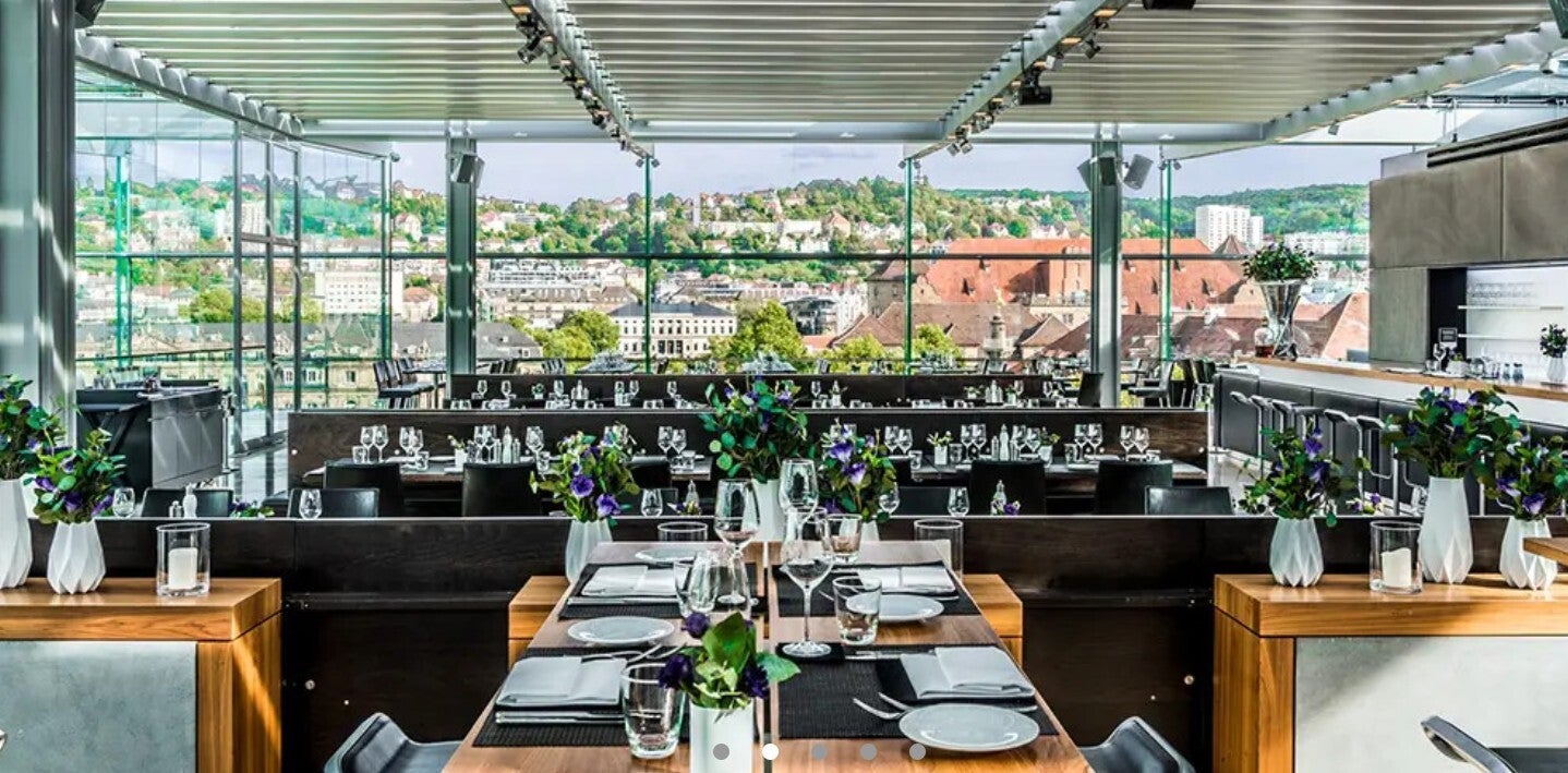 Ein weiteres Highlight des Restaurants ist die flexible Raumgestaltung. Neben dem Hauptbereich stehen kleinere, private Bereiche für exklusive Veranstaltungen zur Verfügung. Die Terrasse, die im Sommer geöffnet ist, bietet zusätzlich eine entspannte Möglichkeit, bei gutem Wetter das Essen im Freien zu genießen und den Blick über die Stadt zu schweifen. Die Architektur des Hauses selbst ist ein Erlebnis: Moderne Formen treffen auf eine durchdachte Innenraumgestaltung, die Gäste gleichermaßen beeindruckt wie die kulinarischen Kreationen.